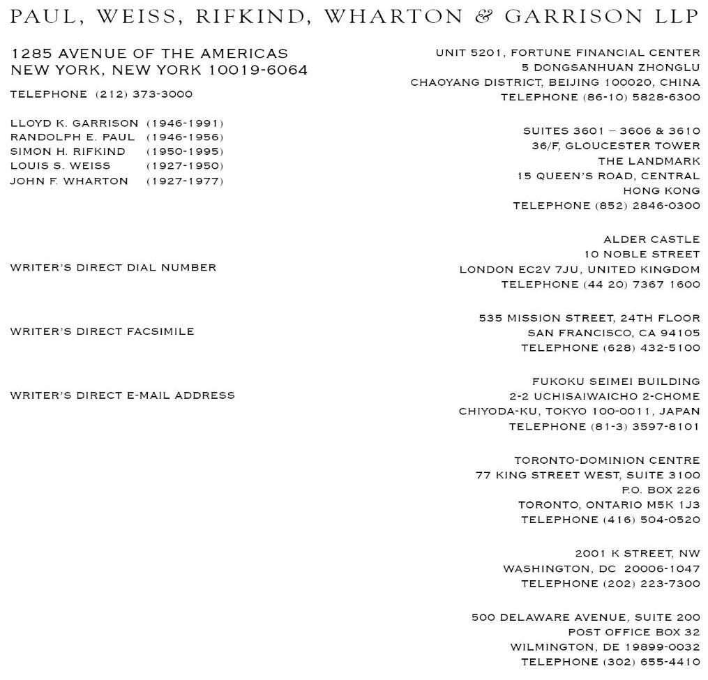 | /s/ PAUL, WEISS, RIFKIND, WHARTON & GARRISON LLP |