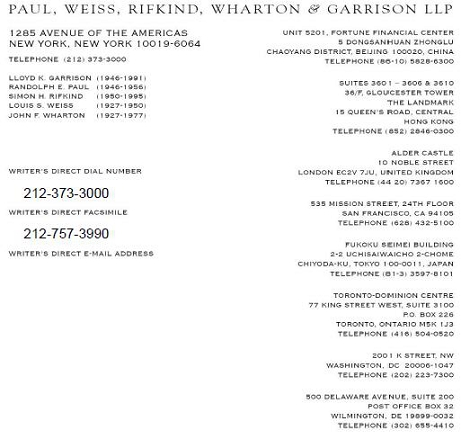 | /s/ PAUL, WEISS, RIFKIND, WHARTON & GARRISON LLP |